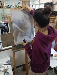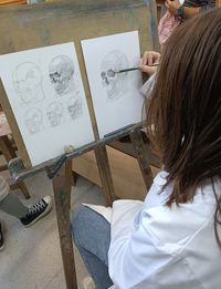INICIACION: Los alumnos que se inician en el arte del dibujo, comenzara con dibujo a carboncillo, grafito y otras técnicas monocromas, para aprender a encajar, composición, proporciones y medidas, volumen, valoración tonal, claroscuro, línea, mancha, canon de la figura humana, etc. Una vez que el alumno tiene una base de dibujo, se pasara al color, a través de técnicas como el pastel, óleo, acrílico, acuarela, etc.