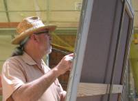 Aprende la técnica del esmalte sintético, con su tío, el pintor Gumersindo Yuste.